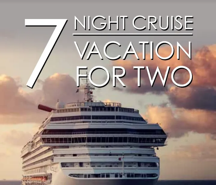 The Sea is Calling Two Adults Select a 4, 5, or 7 Night Cruise with Roundtrip Airfare for Two Included! Before registering this promotional certificate, it is important to read and understand the Terms and Conditions Promotional Certificate This promotional certificate for two adults includes a selection of 4, 5, or 7night cruise from departure ports Baltimore MD., Charleston SC., Fort Lauderdale FL., Galveston TX., Los Angeles CA., Miami, FL., New Orleans LA., Port Canaveral FL., or Tampa FL. Certificate is for accommodations in lower deck, inside staterooms and roundtrip airfare for two to the major airport nearest the selected departure port. Meals and snacks are included on cruise, as well as entertainment and many other onboard activities. Peak season sailings are not available. Peak season includes June through August sailings and all major holidays New Year’s Day, Easter, Memorial Day, Thanksgiving and Christmas. Two travel dates are required a preferred and alternative, each must be at least 45 days in advance with a minimum of 30 days between the two dates selected. Government Taxes, Carrier and Agency Imposed Fees
